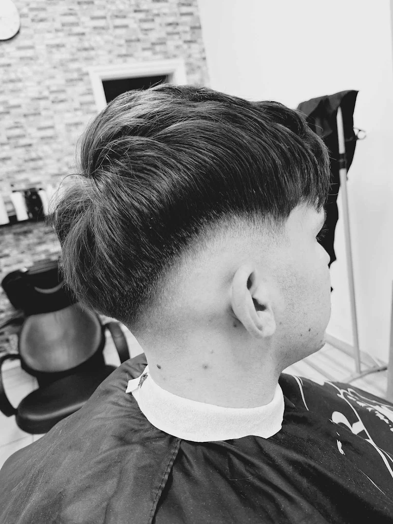 Modern, letisztult frizura, ahol a haj fokozatosan rövidĂŒl oldalt Ă©s hĂĄtul. StĂlusos Ă©s könnyen kezelhetĆ.